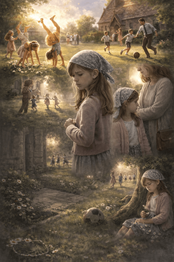 I stood next to Mum and didn’t say anything else. I watched them play. I watched them run and laugh and hide behind the trees for a long time.